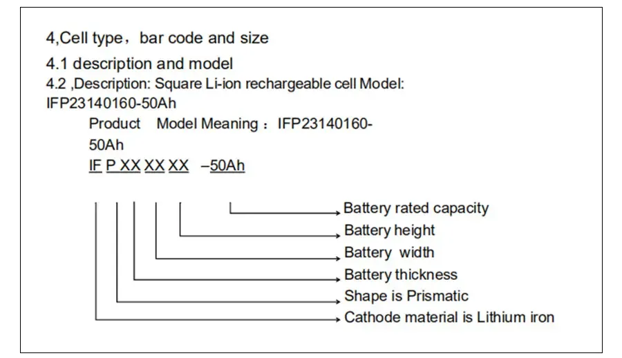 This specification describes the type and size, performance, technical characteristics, warning and caution of the prismatic power cell. The specification only applies to IFP23140160-50Ah cell supplied by HEFEI HOYE ECOLIENG TECHNOLOGY CO., LTD