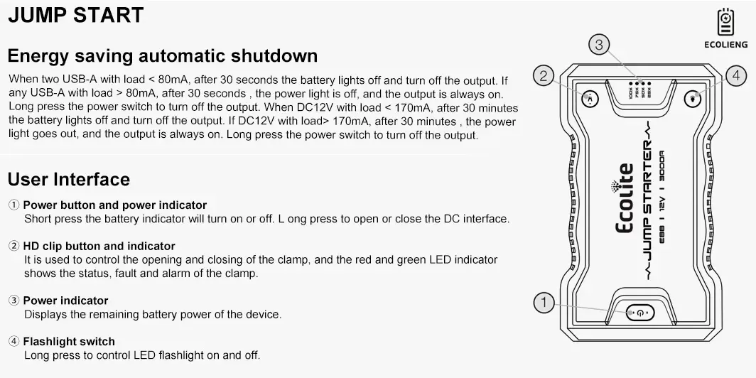 | ECOLTO Portable Lithium Jump Starter |